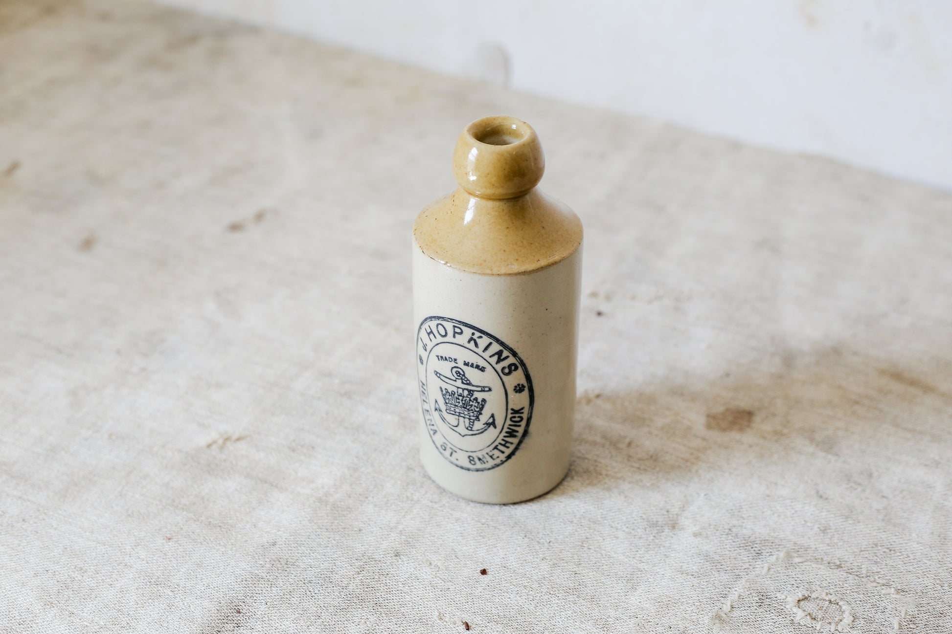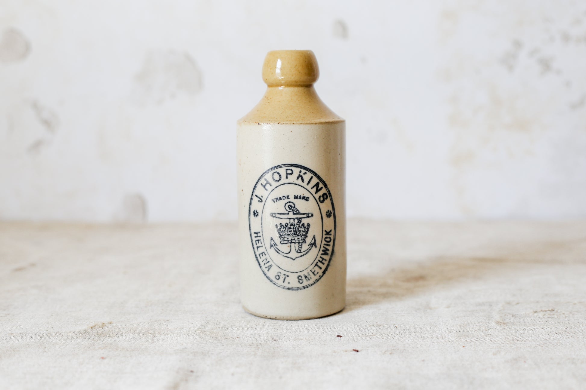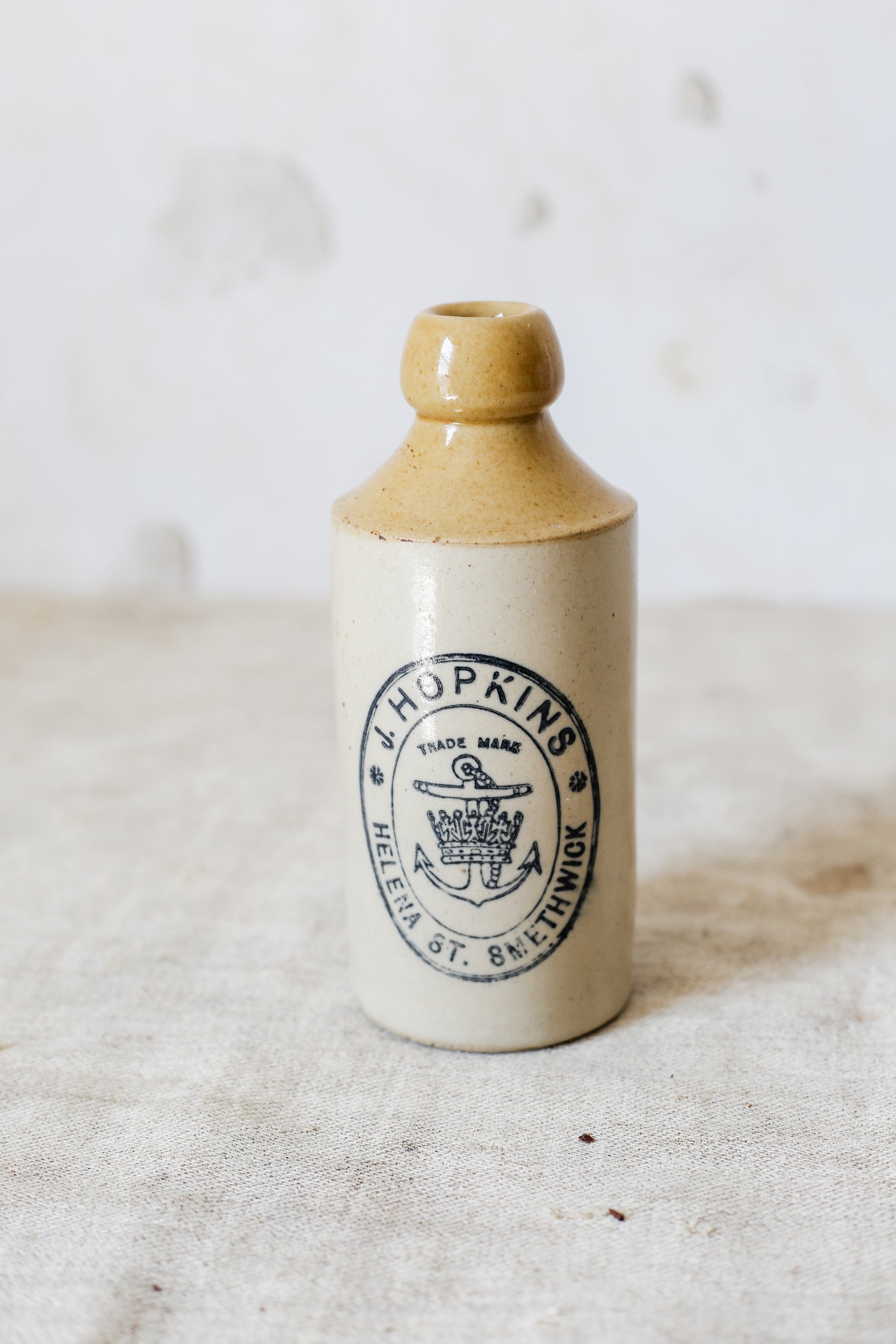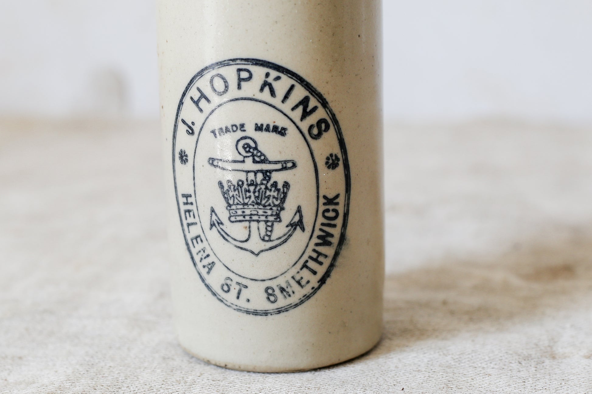 Antique J. Hopkins Stoneware Bottle with Anchor and Crown