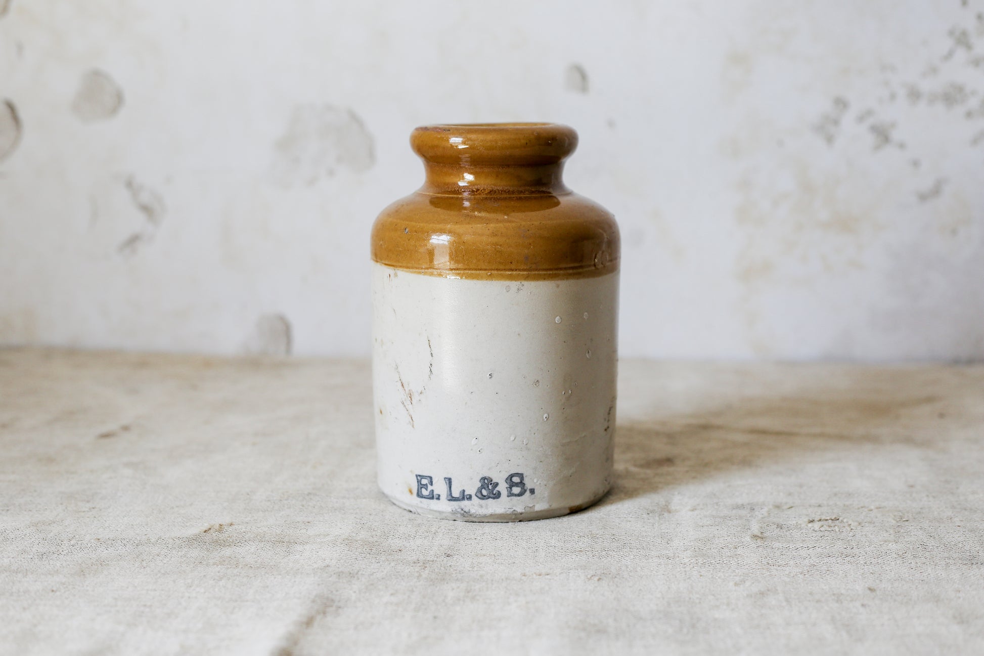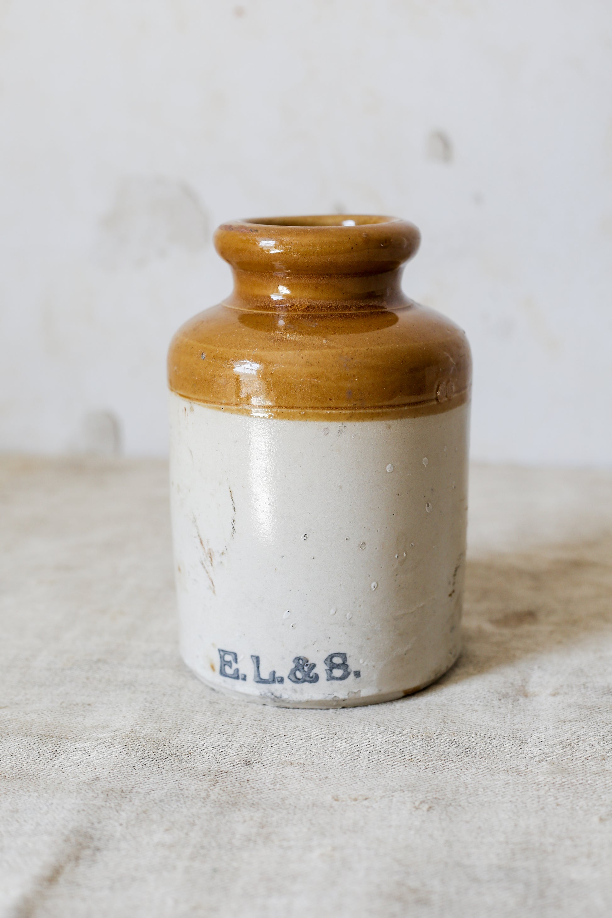 Antique English Pantry Storage Crock, Stamped "E.L.& S."