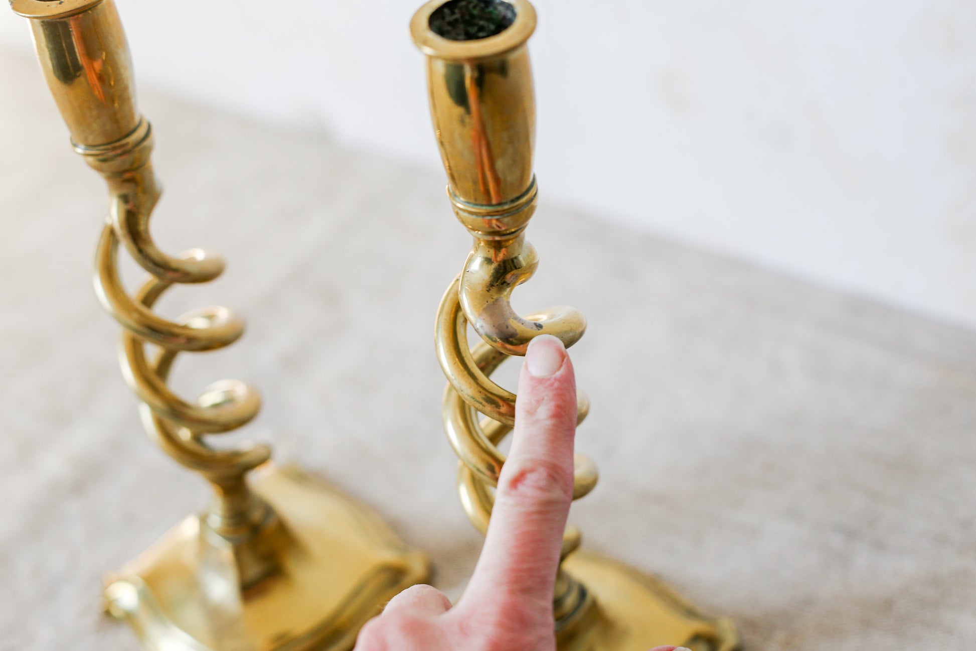 Pair of 19th Century English Cast Brass Open Barley Twist Candlestick Holders with Flared Square Bases