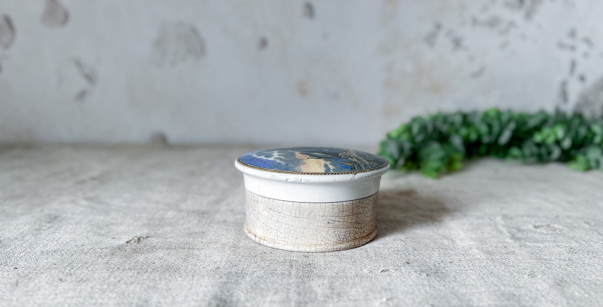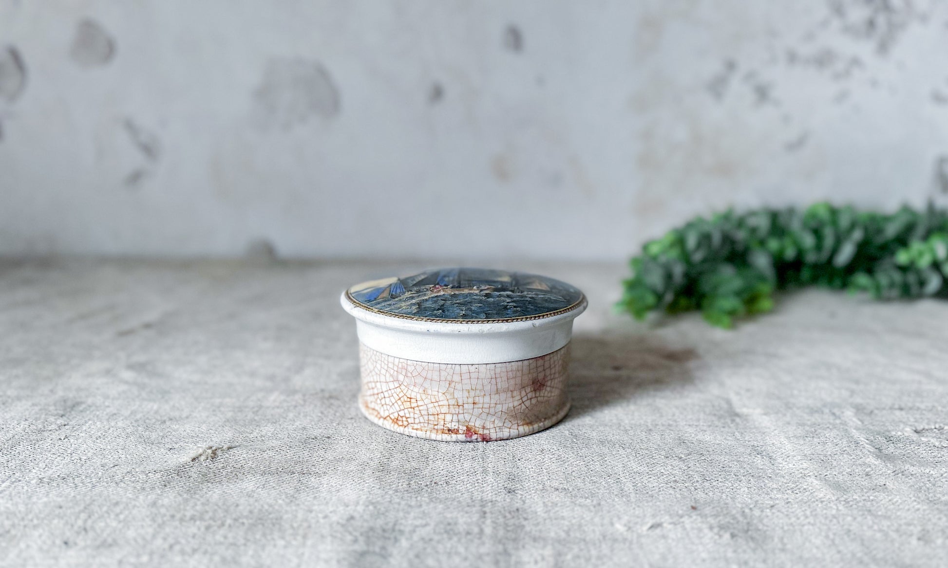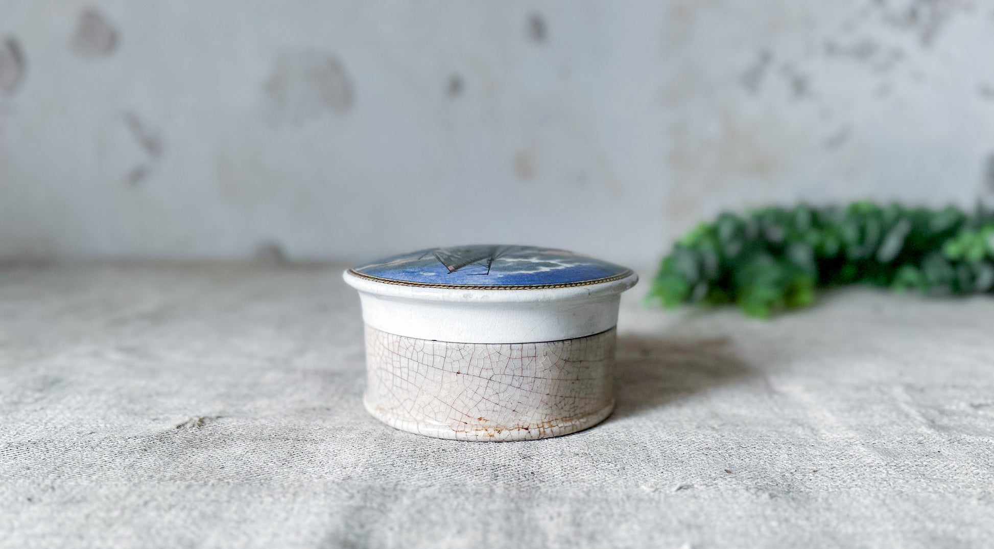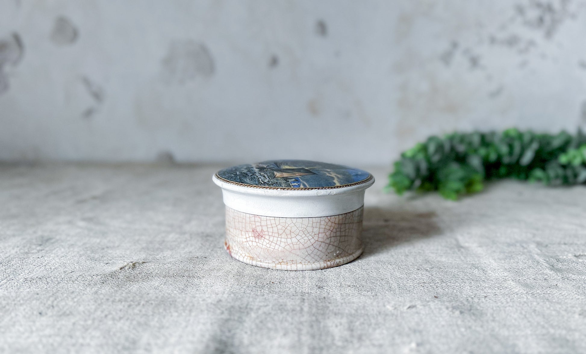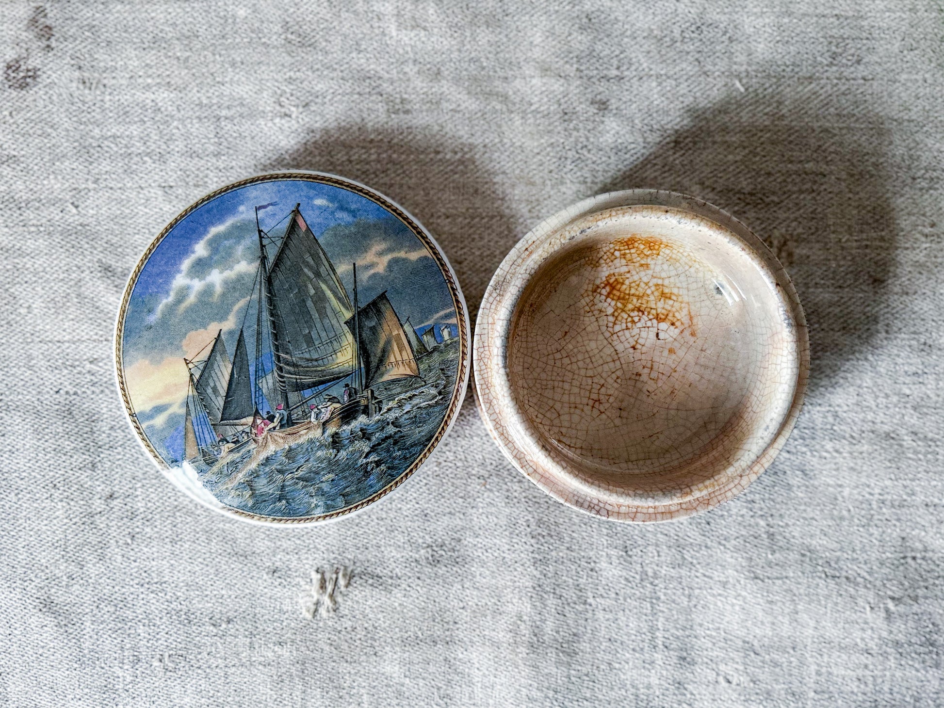 Antique Prattware Lid & Base of Fishing Boats at Sea