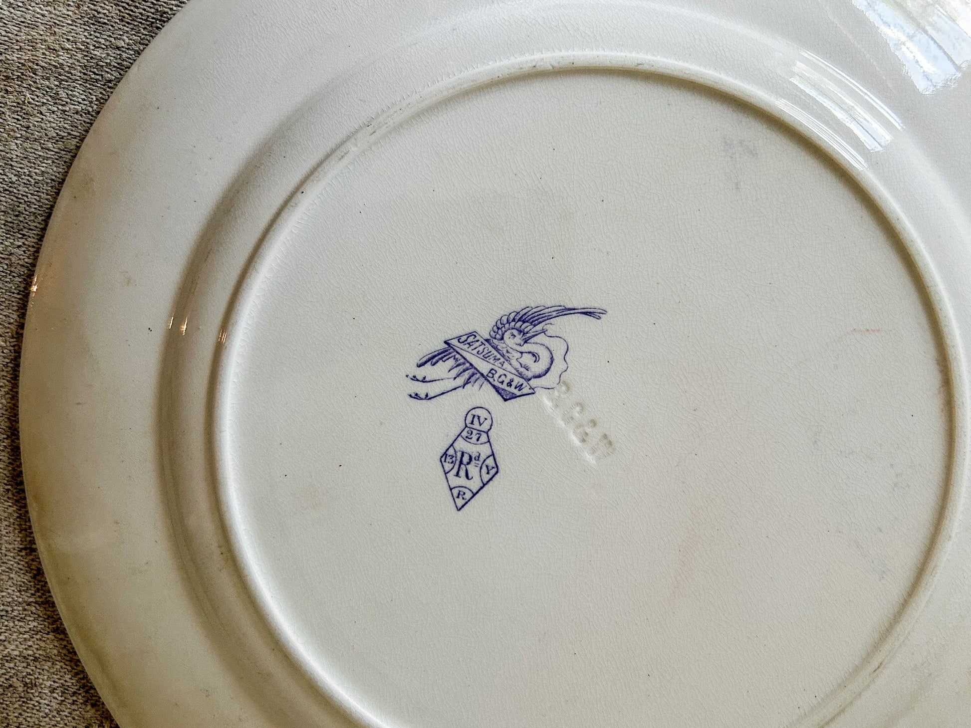 The back of the plate has a maker stamp and registration diamond. "BG&W" for Bates, Gildea & Walker, which produced ironstone pieces between 1878-1881.