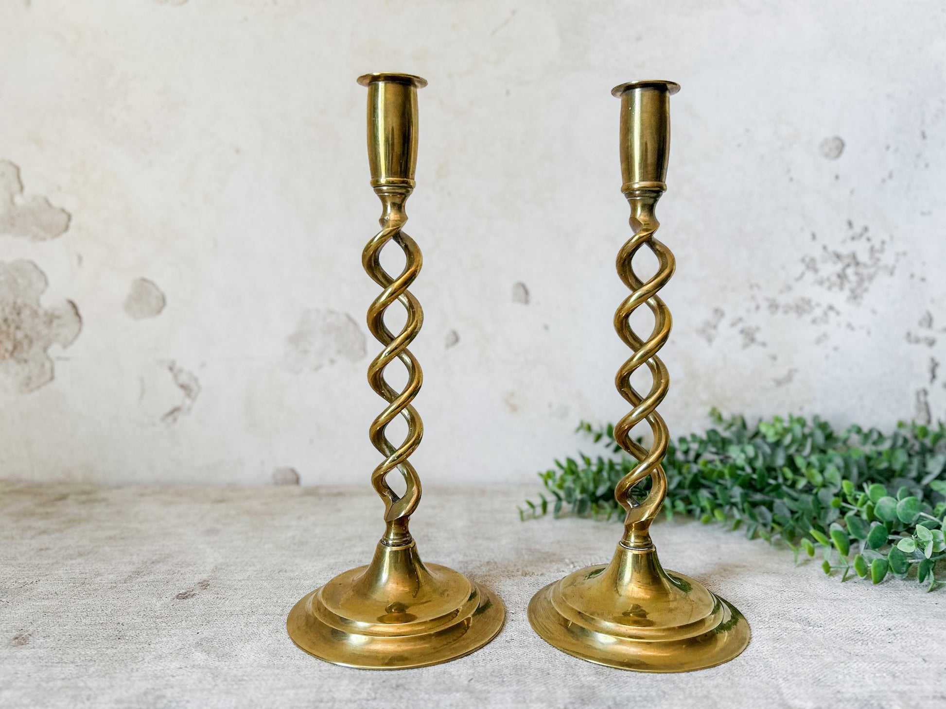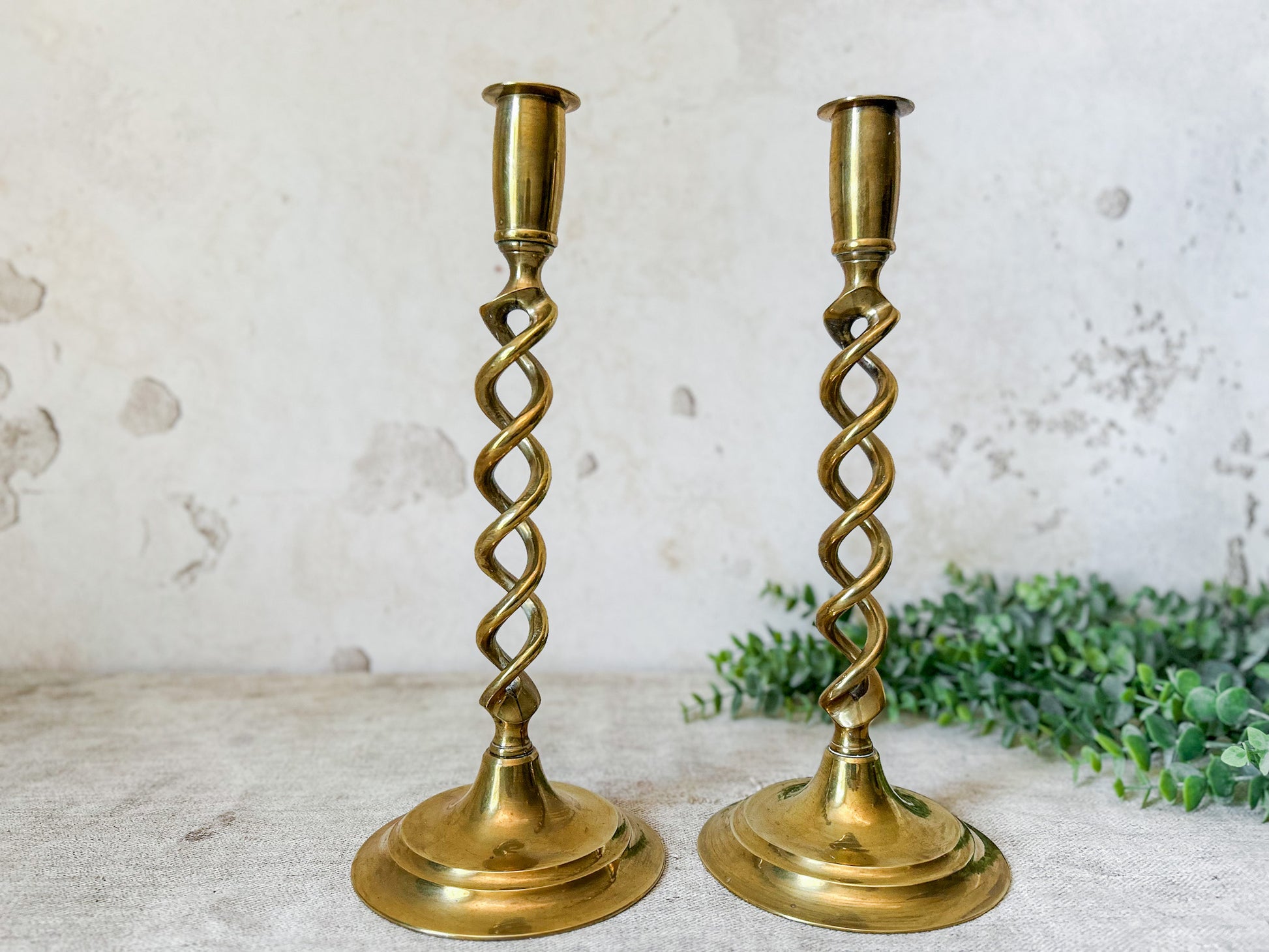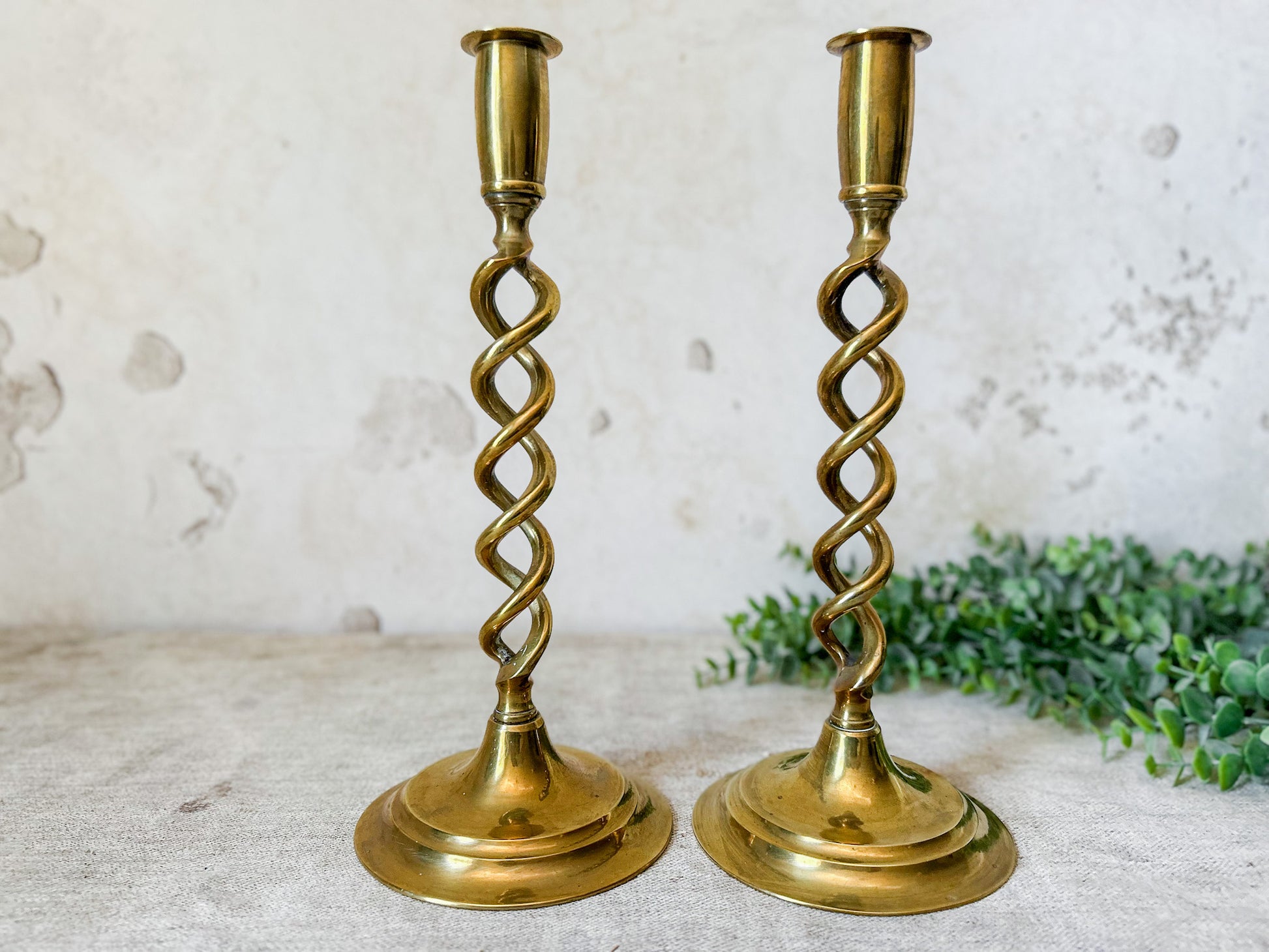 Set of Antique Open Barley Twist Brass 12" Candle Sticks