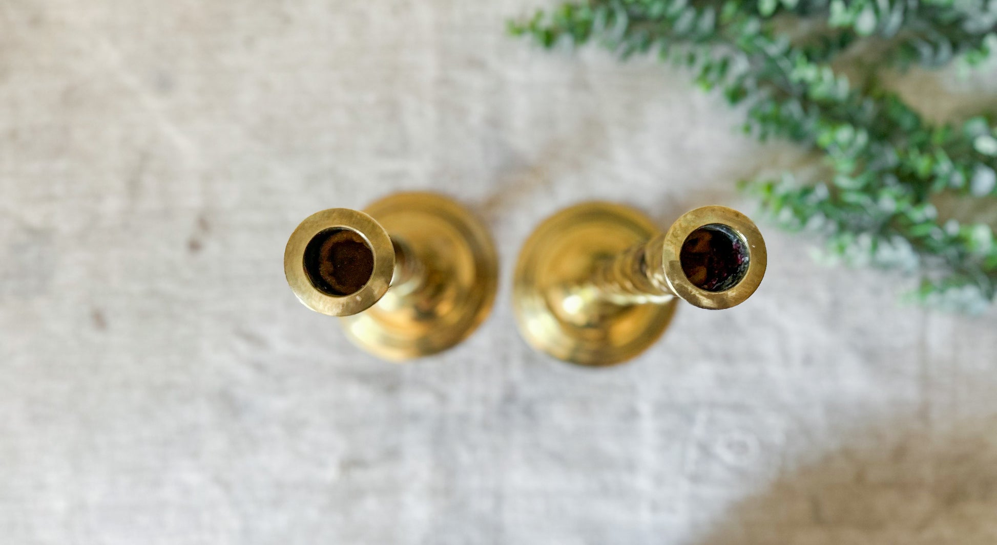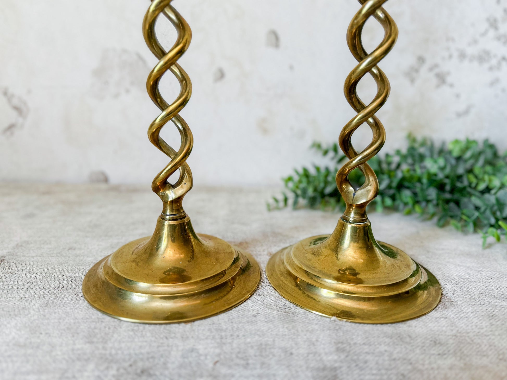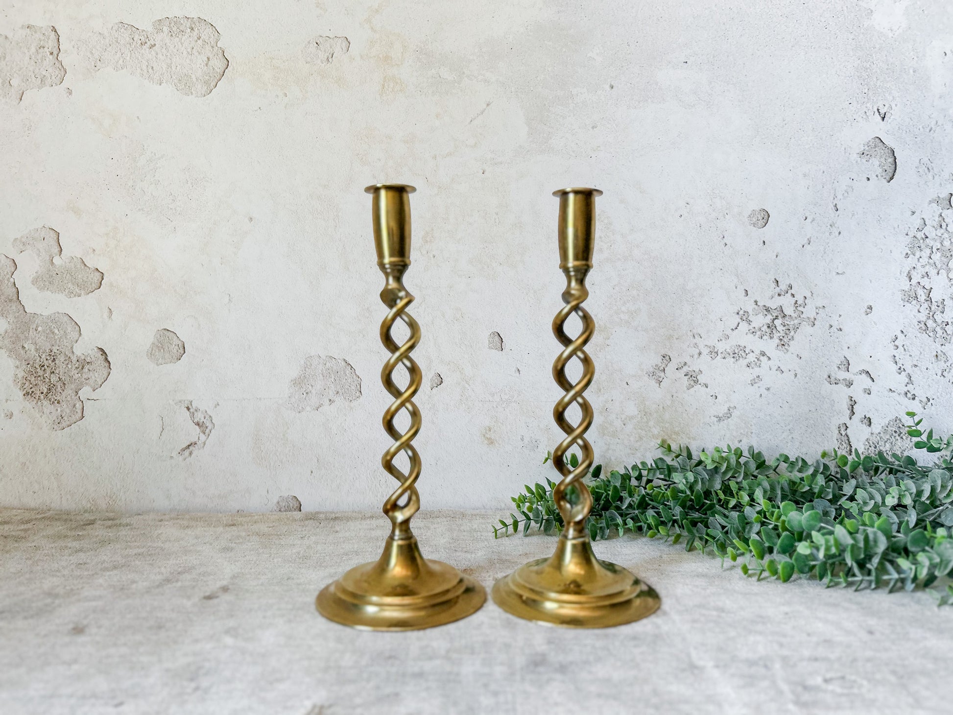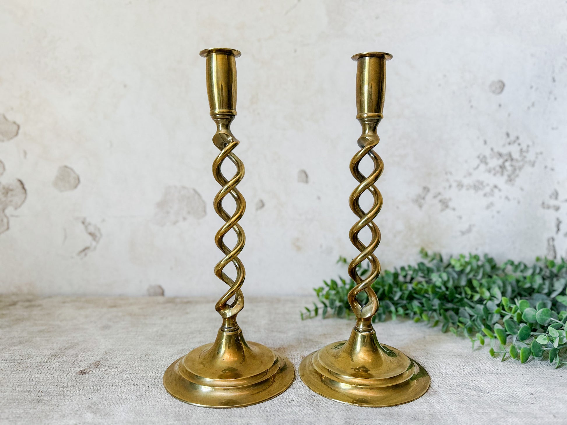 Set of Antique Open Barley Twist Brass 12" Candle Sticks
