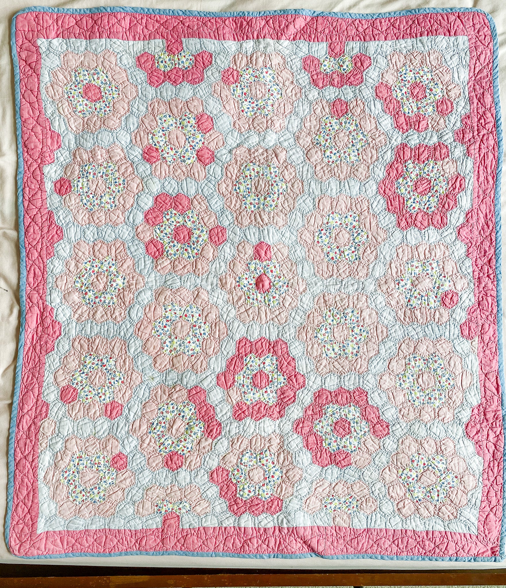 Vintage Grandmother’s Flower Garden Crib Quilt