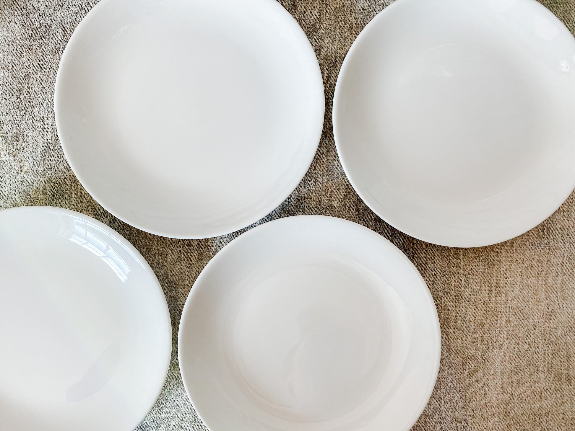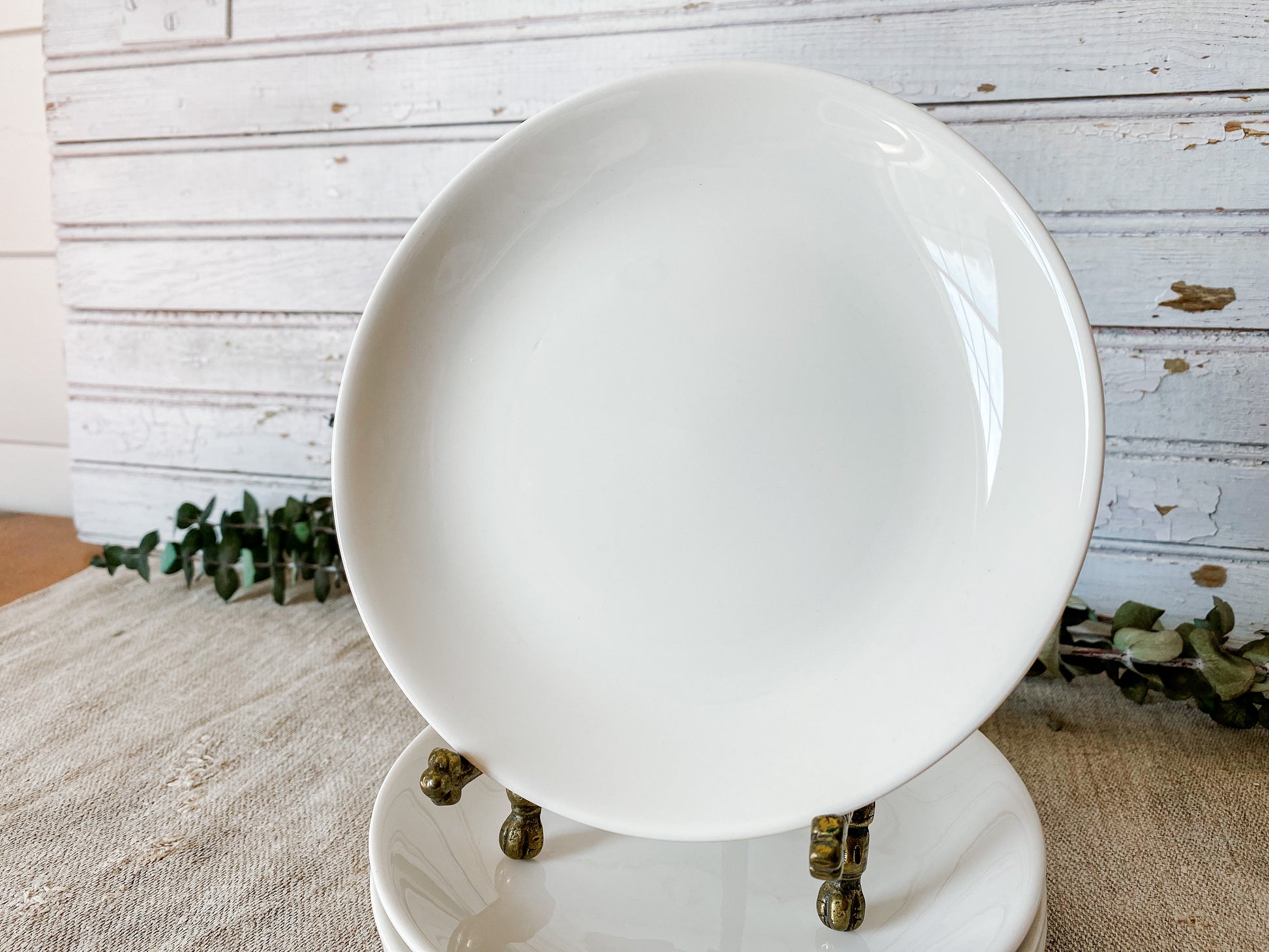Vintage Set of Homer Laughlin Best China White Ironstone 6.5" Salad Plates, Dessert Plates, Midcentury Heavy Restaurant Ware