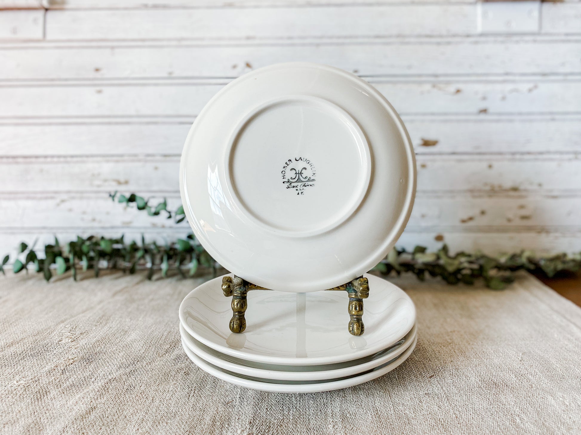 These plates are vintage and are preloved. There are no chips or cracks present. There may be very light staining and wear in the glaze pits on the backside of the plates, normal for their age and condition.
