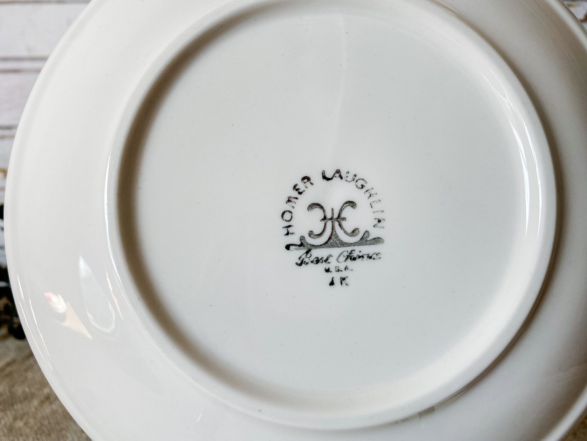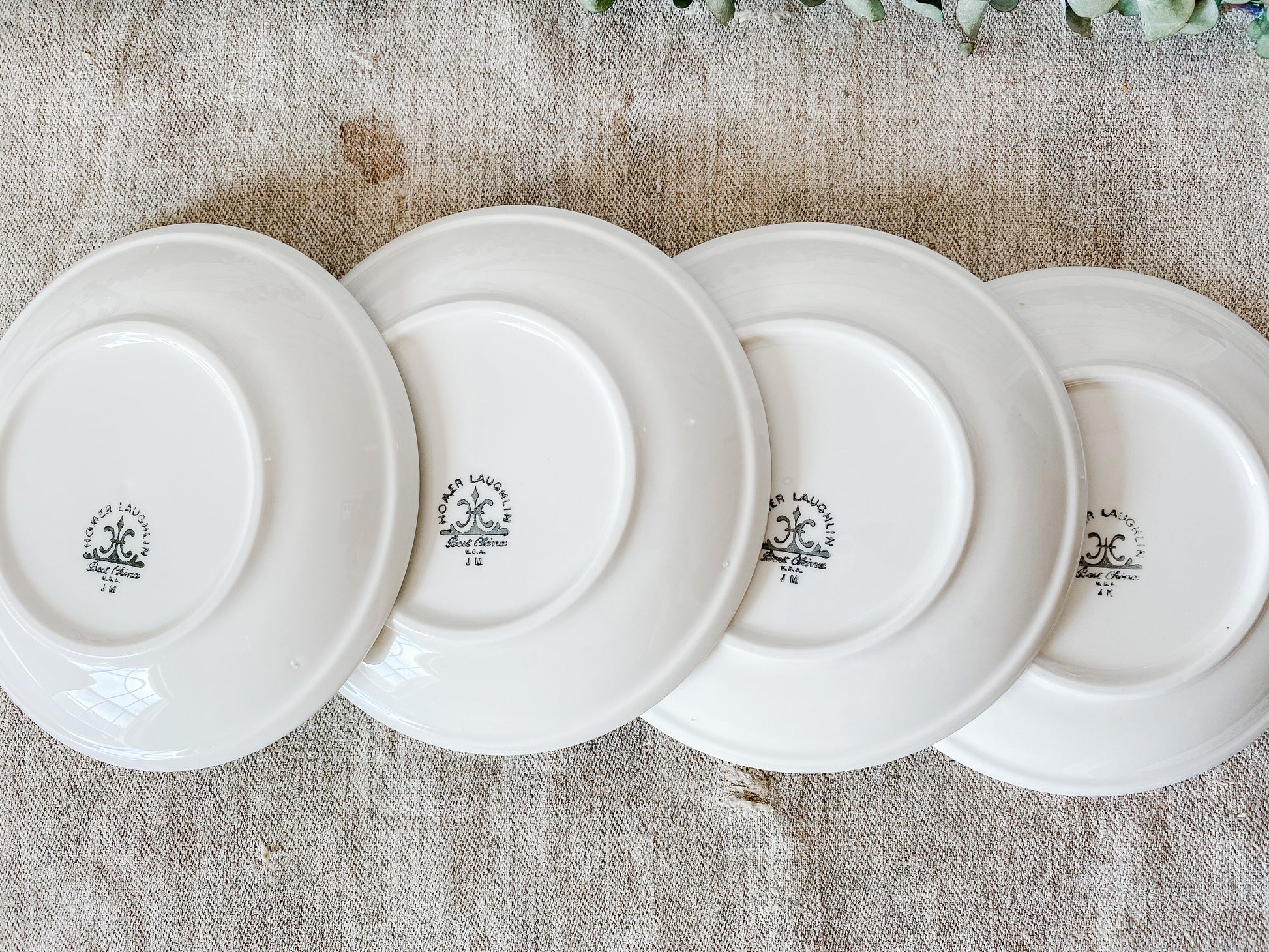Plates are sold in sets of 4; price is for a set of 4 plates. The plates shown in the photos are representative of what you will receive. The backstamp reads 'Homer Laughlin Best China', but the date codes may differ from the photos. The date codes on the plates range from 1960-1980s.