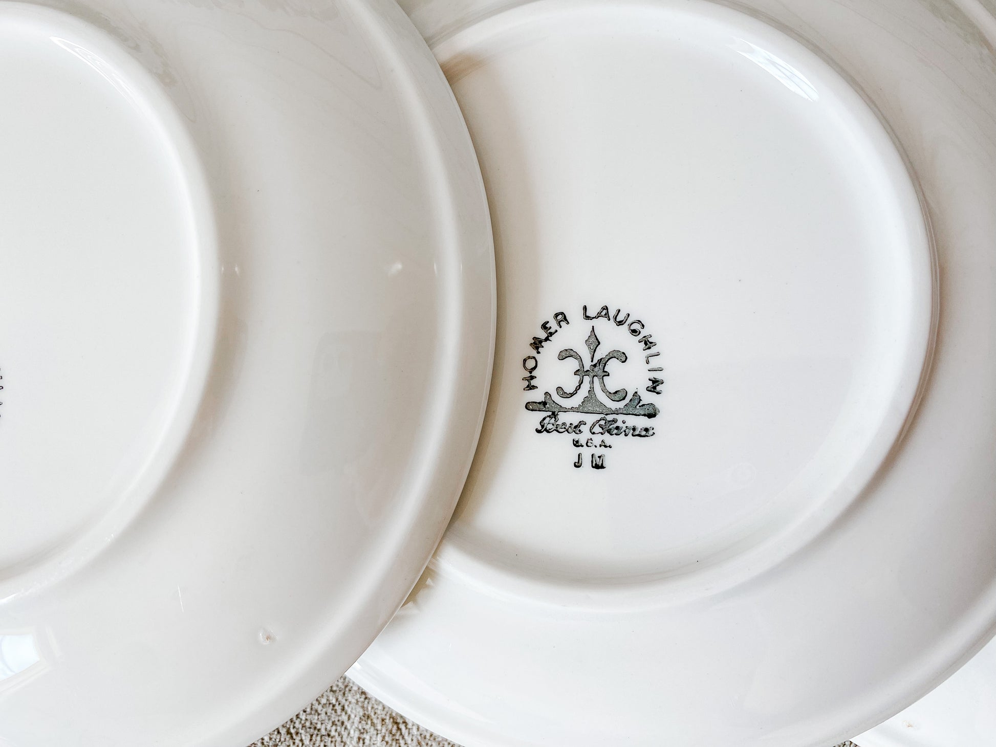 Bring a touch of classic charm to your table with these beautiful, vintage Homer Laughlin white ironstone salad plates. Heavy and sturdy, they were made to last and add a timeless touch to any setting. With their midcentury restaurant-grade quality and classic design, these plates guarantee an unforgettable dining experience.