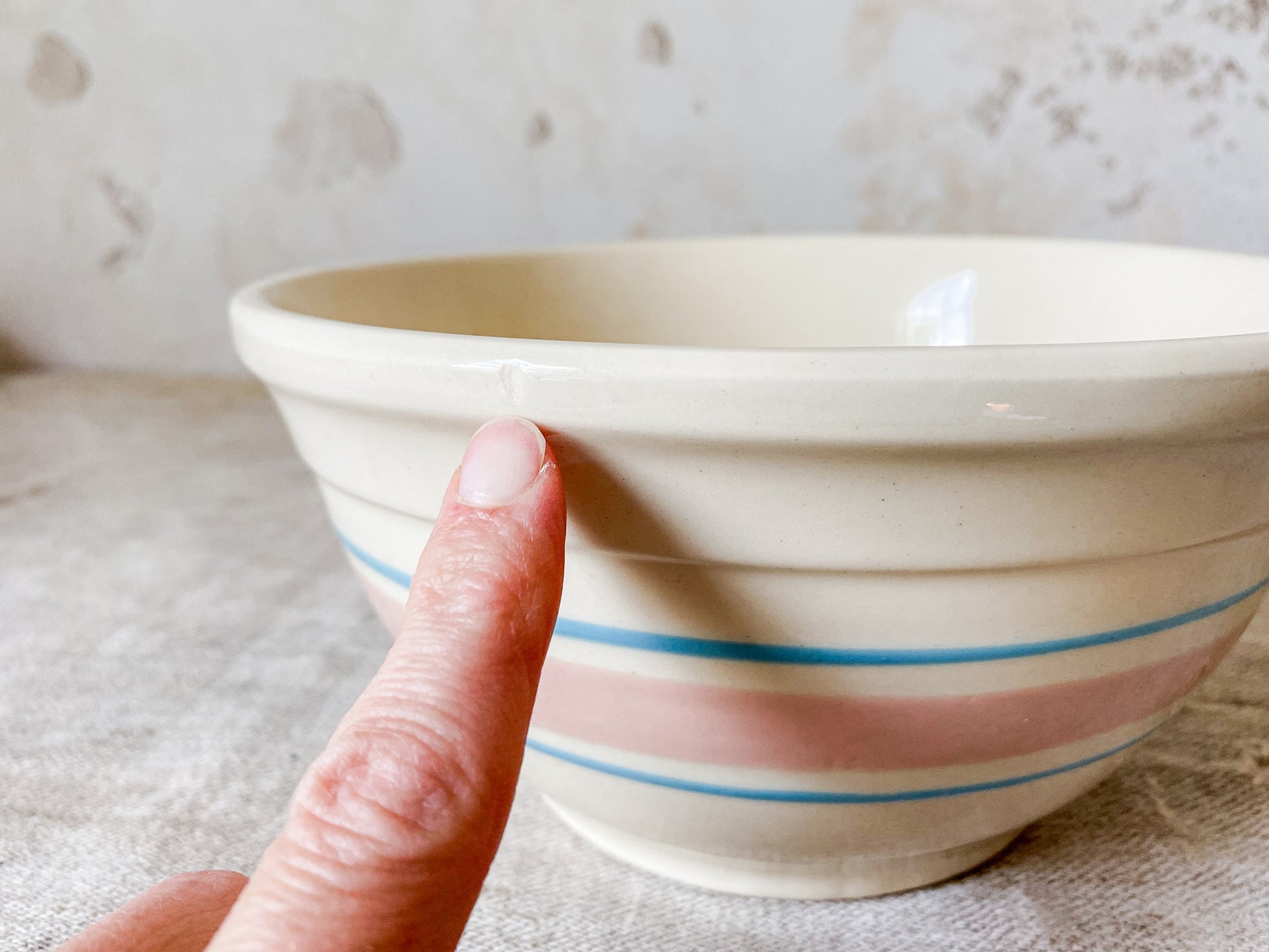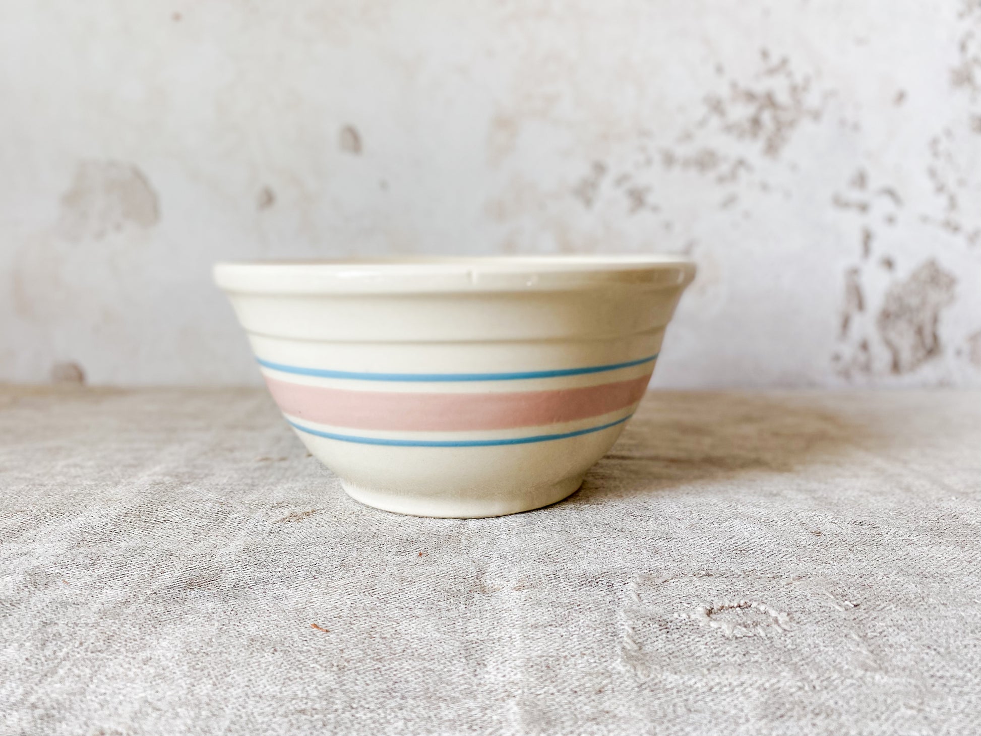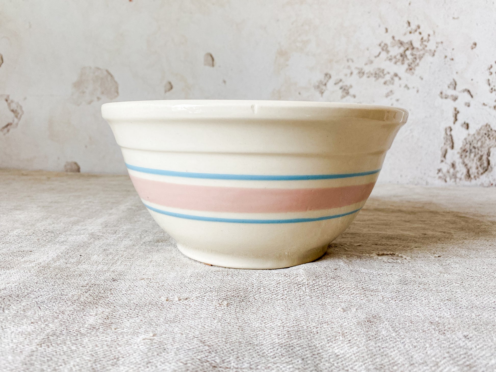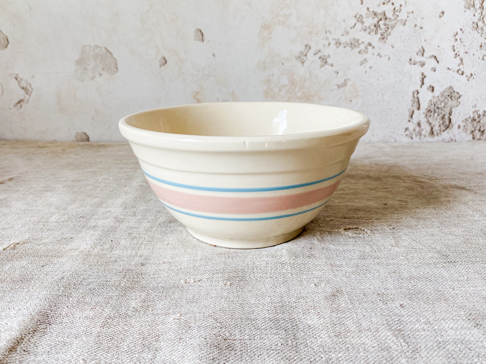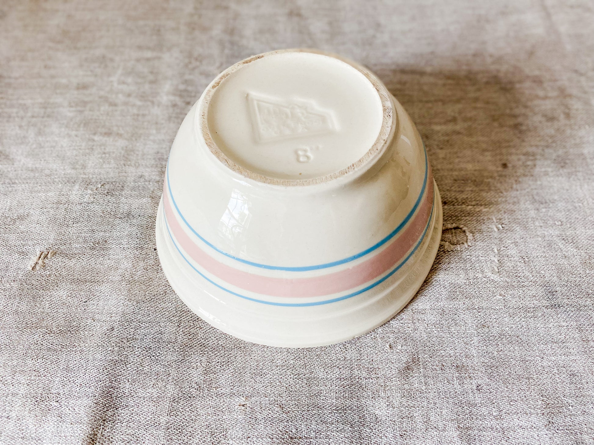 Vintage McCoy Ovenproof Blue & Pink Striped 8” Mixing Bowl