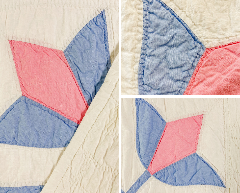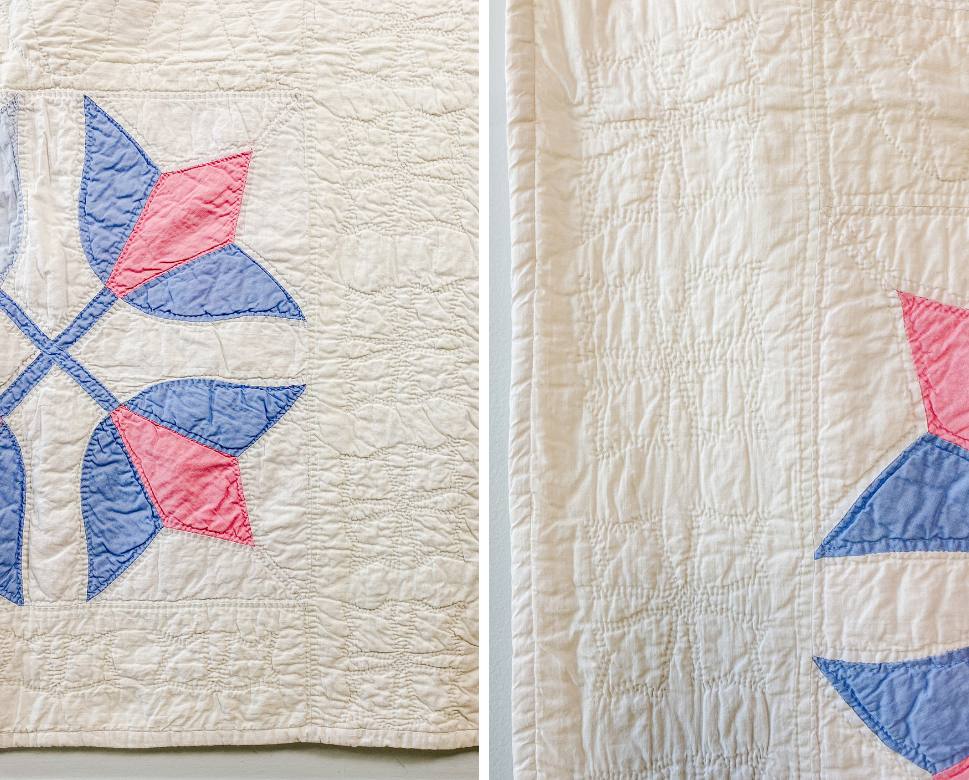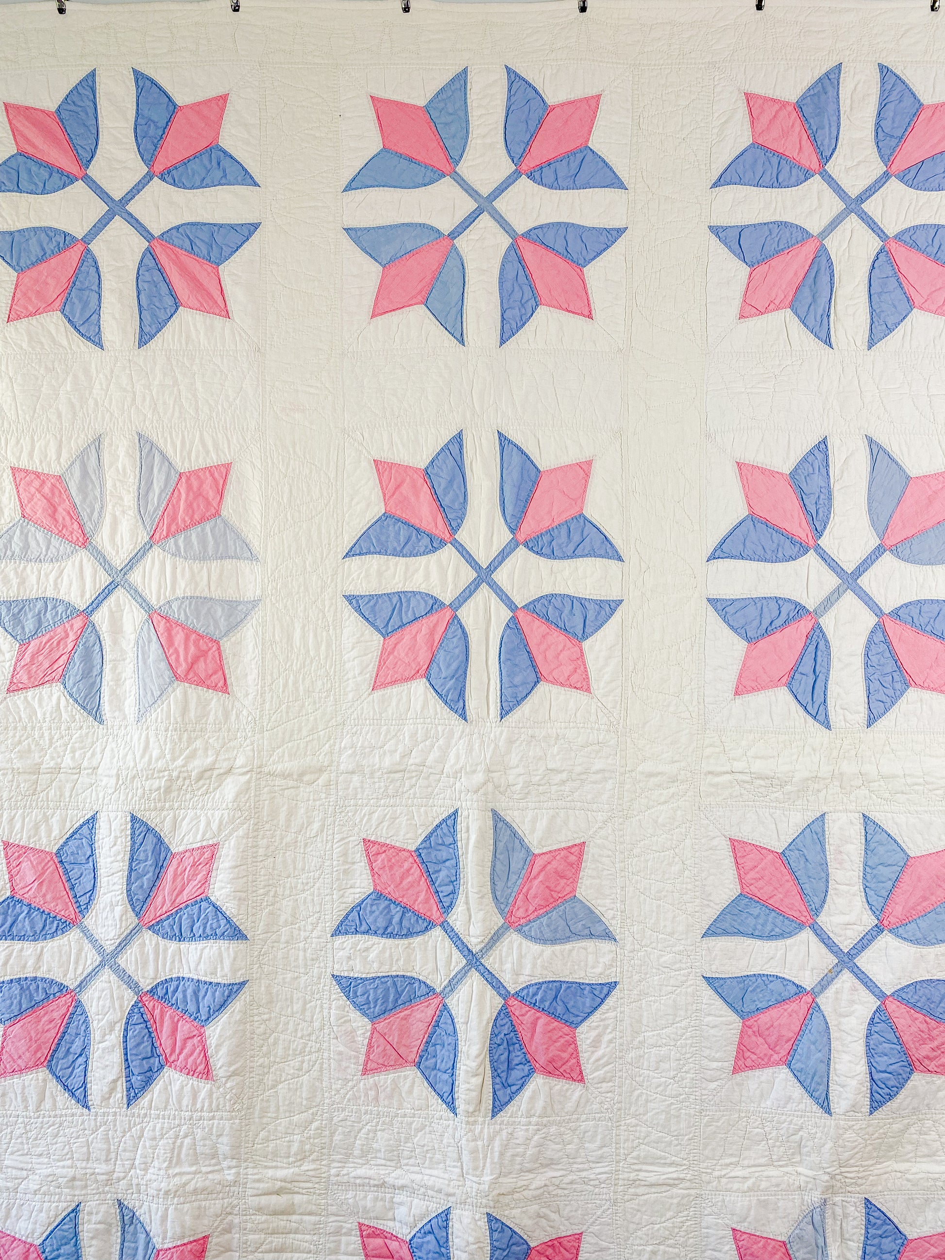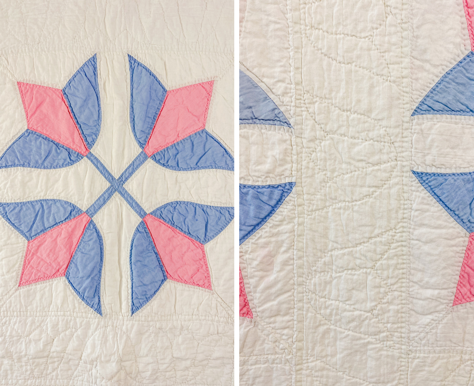 Vintage Pastel Blue & Pink Crossed Tulips Quilt, c1930