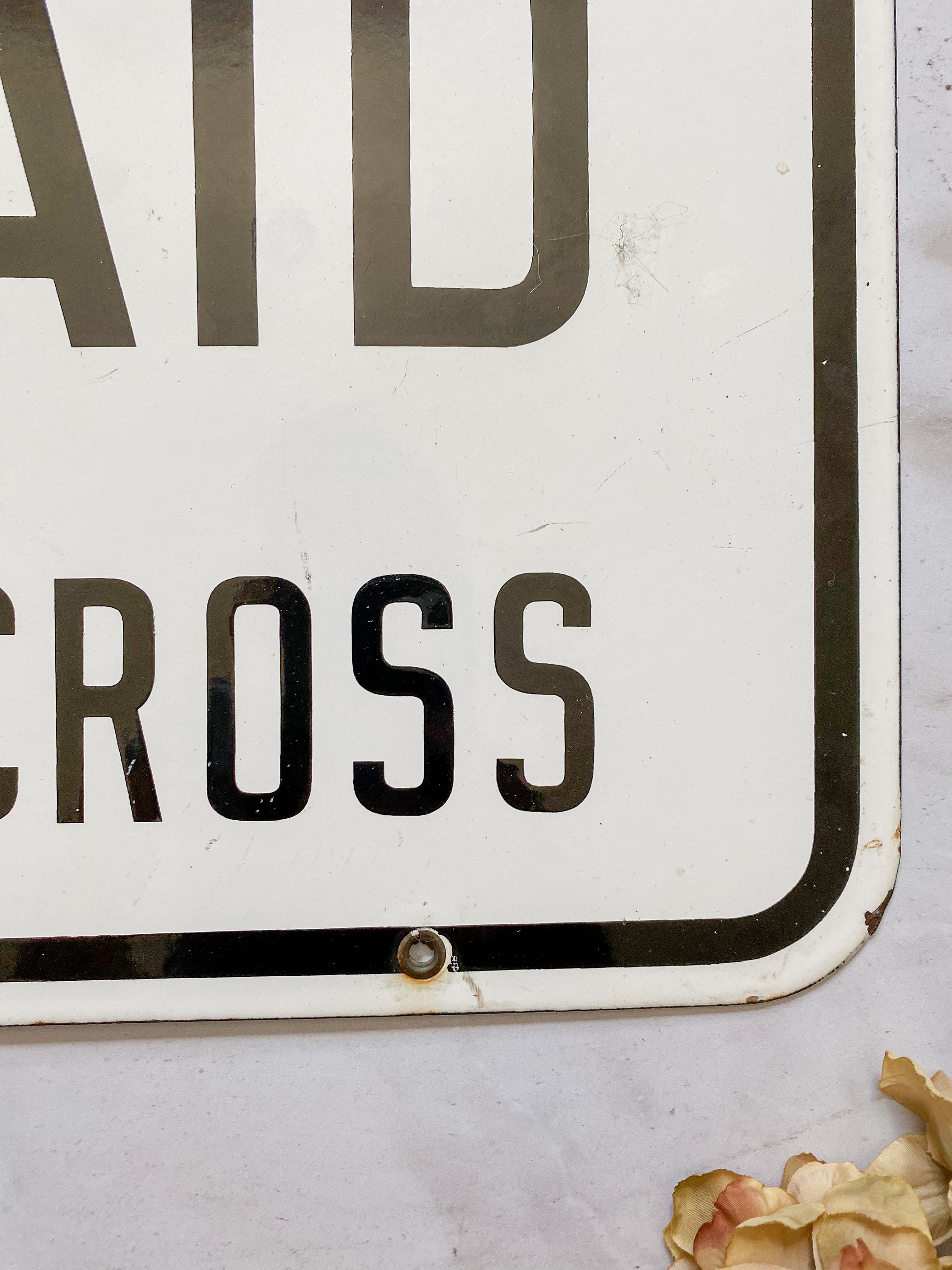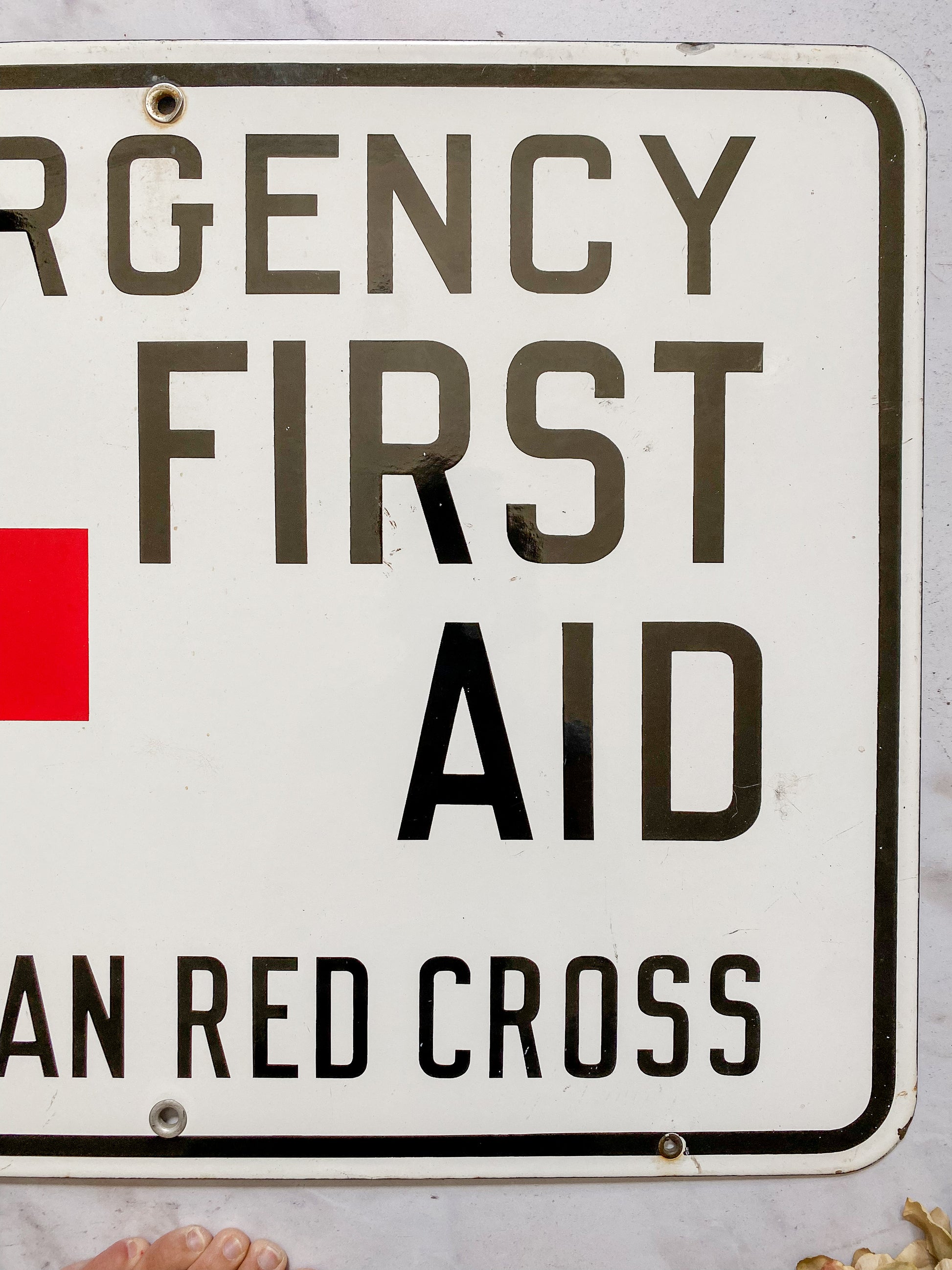 Vintage Porcelain American Red Cross Sign - Emergency First Aid, c1950