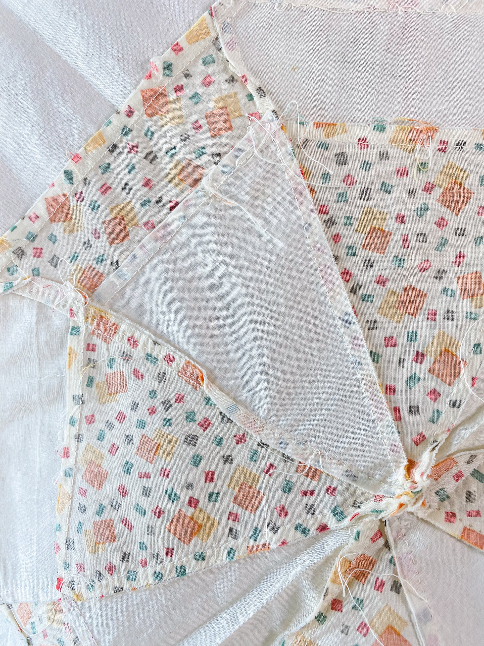 Good vintage condition. Scattered storage stains. Please review all photos. It has not been washed. This quilt top did come from a pet friendly home.