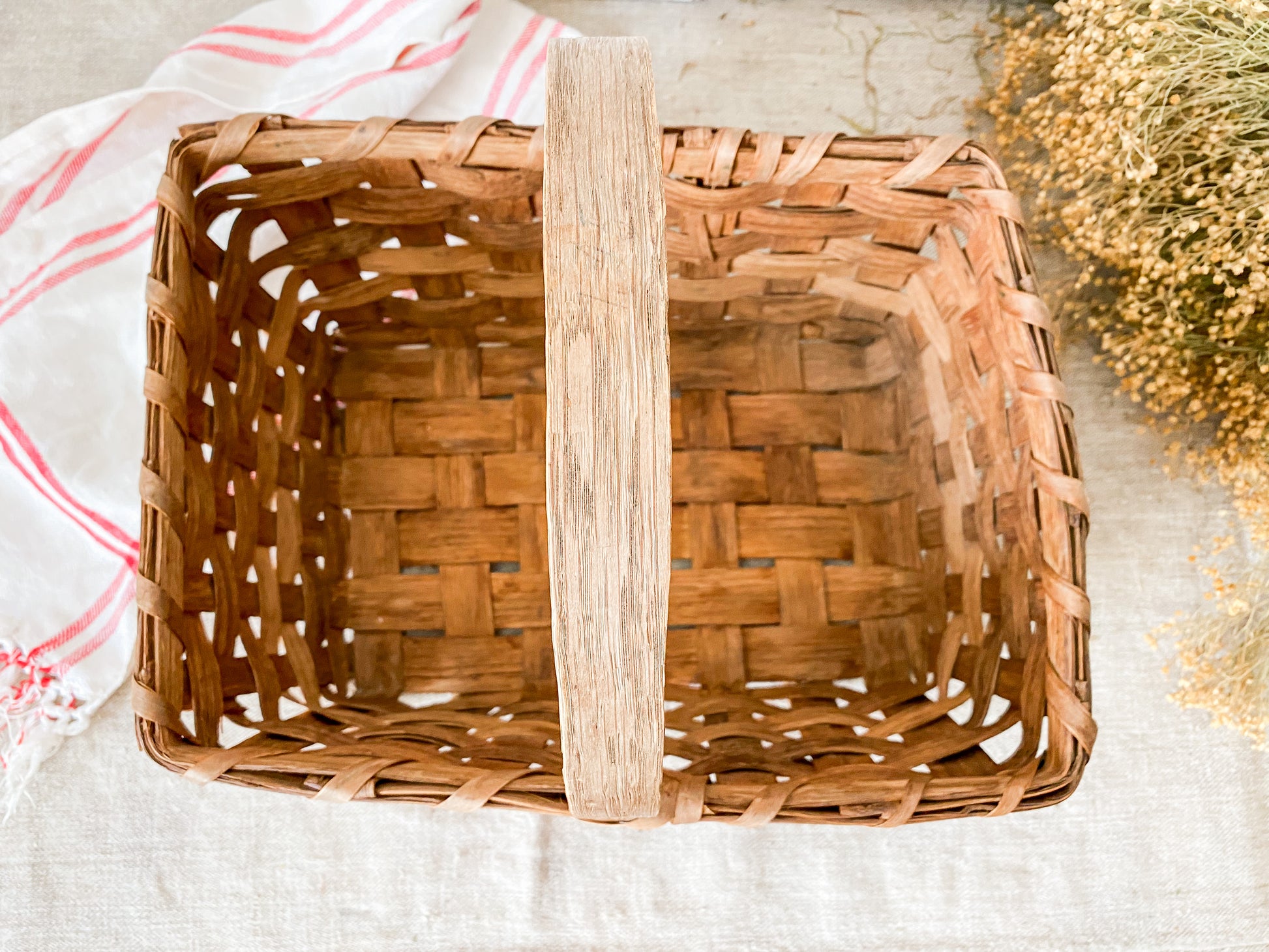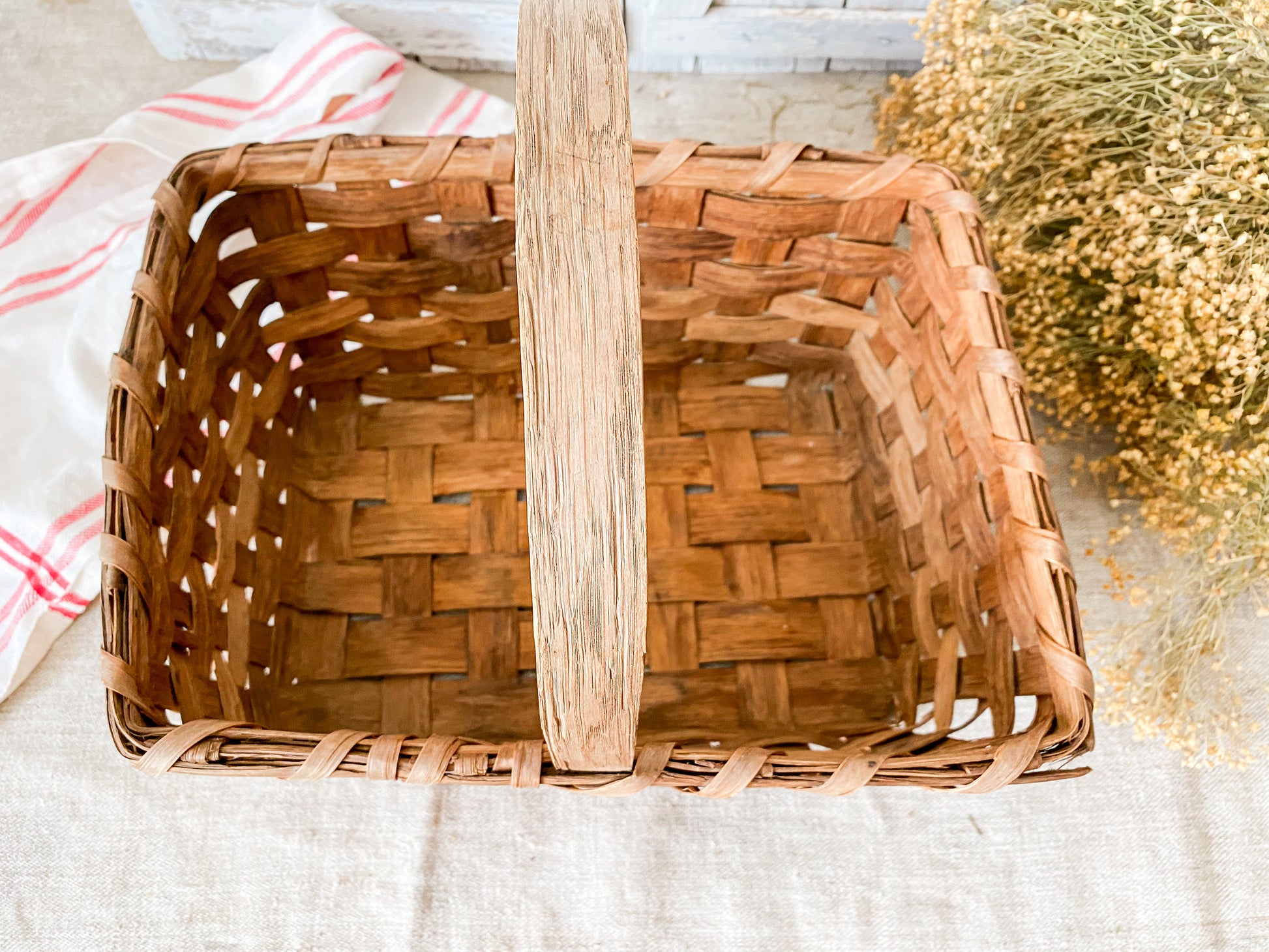 Vintage Split Wood Rectangular Woven Market Basket with Handle